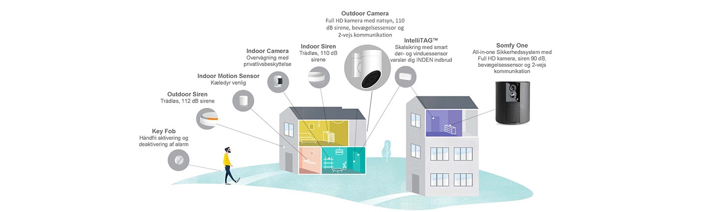Somfy Protect er mere end blot et sikkerhedssystem. Det er et komplet økosystem af tilsluttede smart produkter, som du kan mixe og matche for at skabe den ideelle løsning til dit hjem og din families behov. Let at installere og på blot 10 minutter. Herefter kan du holde øje med og styre alt direkte fra din smartphone, fra ydersiden af dit hjem, til det indendørs miljø hvor dine børn og kæledyr leger.