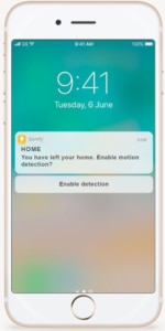 For det første, når du forlader dit hjem, sendes en push notifikation til din smartphone, som minder dig om at aktivere kameraet mens du er væk. På denne måde er du sikker på at dit hjem ikke er ubeskyttet.